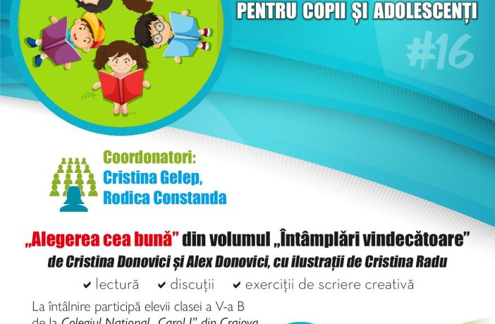 Muzeul Cărții și Exilului Românesc organizează miercuri 22 octombrie 2025, la ora 12.45, cea de-a șaisprezecea întâlnire din cadrul Clubului de lectură pentru copii și adolescenți. La întâlnire participă elevii clasei a V-a B de la Colegiul Național „Carol I” din Craiova, însoțiți de profesor diriginte Loredana Bocioagă. Textul propus spre lectură este povestea „Alegerea cea bună”, care face parte din volumul „Întâmplări vindecătoare”, semnat de Cristina Donovici și Alex Donovici, cu ilustrații realizate de Cristina Radu. Discuțiile se vor axa pe tema prieteniei și a valorilor morale care includ…