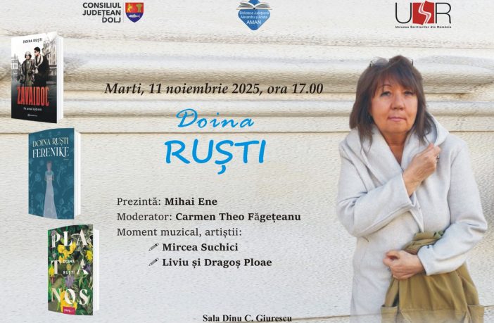 Biblioteca Județeană „Alexandru și Aristia Aman” are plăcerea de a vă invita la un eveniment literar special, dedicat uneia dintre cele mai originale și apreciate voci ale prozei românești contemporane: Doina Ruști. În cadrul întâlnirii vor fi prezentate cele mai recente romane ale autoarei, „Zavaidoc”, „Ferenike” și „Platanos”, cărți care explorează cu o forță narativă remarcabilă memoria culturală, misterele identității și subteranele pasiunilor omenești. “Zavaidoc” surprinde destinul unuia dintre cei mai carismatici lăutari ai perioadei interbelice, transformându-i legenda într-un roman vibrant despre artă, iubire și libertate. “Ferenike” se construiește în…