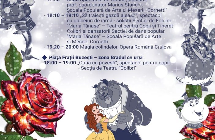 Weekendul acesta sunteți invitați să vă bucurați de magia sărbătorilor de iarnă la Târgul de Crăciun din Piața Frații Buzești, unde tradiția și bucuria Crăciunului prind viață prin spectacole și activități captivante pentru întreaga familie. Vineri, seara debutează la ora 17:30 cu un spectacol de vioară populară oferit de elevii coordonați de prof. Marius Stanciu de la Școala Populară de Arte și Meserii „Cornetti”. Melodiile tradiționale românești vor aduce o notă autentică începutului de weekend. De la ora 18:10, atmosfera devine cu adevărat specială prin spectacolul „Să trăiești gazdă aleasă”,…