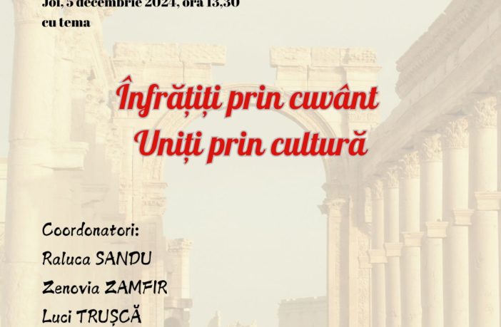 Biblioteca Județeană „Alexandru și Aristia Aman”, în colaborare cu Biblioteca Județeană „Antim Ivireanul” Vâlcea, Liga Scriitorilor „Valeriu Anania” Vâlcea, Asociația Liga Scriitorilor Români „Damian Stănoiu”, Filiala Olt, organizează joi, 5 decembrie 2024, începând cu ora 13.30, evenimentul „Înfrățiți prin cuvânt. Uniți prin cultură”. Evenimentul este coordonat de colegele noastre Raluca Sandu, Zenovia Zamfir, Luci Trușcă și Eugenia – Ionela Mateșică. Întâlnirile culturale organizate de bibliotecarii din zona Olteniei promovează dialogul, diversitatea culturală și valorile comunității. Aceste evenimente aduc împreună oameni aplecați spre literatură, artă, istorie și tradiții locale, oferind oportunități…