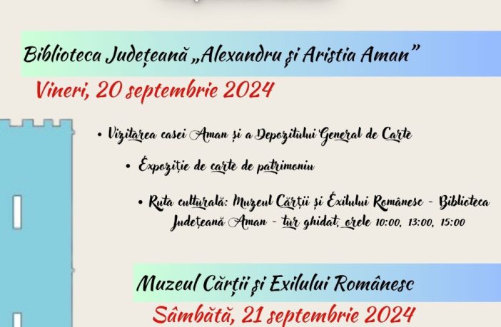 Biblioteca Județeană „Alexandru și Aristia Aman” organizează vineri, 27 septembrie 2024, începând cu ora 18.00, a XV-a ediție a evenimentului „Nocturna bibliotecilor 2024 – O noapte în bibliotecă”, desfășurat anul acesta sub genericul „Noaptea detectivilor de carte – mistere literare, rezolvare de enigme, incursiuni în lumea romanelor polițiste”. Biblioteca își va deschide larg porțile pentru cititorii de toate vârstele, care sunt invitați să ia parte la numeroasele evenimente organizate cu scopul de a cunoaște mai bine biblioteca, serviciile și spațiile în care își desfășoară activitatea. Printre surprizele pregătite se află:…