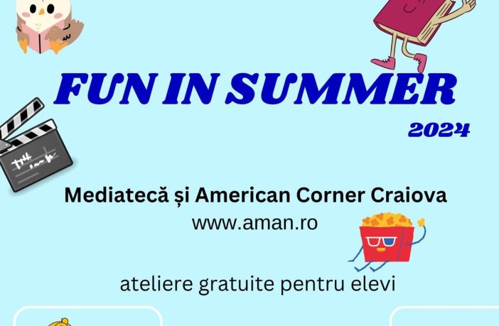 Biblioteca Județeană „Alexandru și Aristia Aman”, prin compartimentul Mediatecă și American Corner Craiova, continuă seria de activități gratuite, desfășurate în fiecare vară în cadrul programului Fun in Summer. Activitățile propuse pentru lunile iulie și august se vor desfășura fizic, la sediul bibliotecii județene (în sala „Marin Sorescu”, compartimentul Mediatecă și American Corner) și se adresează elevilor din clasele I-IX. Înscrierile sunt necesare doar pentru cursurile Youtube Video Production, Junior Designer, MeetIT și Clubul de limba spaniolă. Pentru activitățile care includ jocurile de masă și vizionarea de filme este suficient ca…