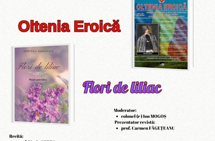 Biblioteca Județeană „Alexandru și Aristia Aman” organizează joi, 27 iunie 2024, în parteneriat cu Asociația Națională Cultul Eroilor „Regina Maria”, Filiala Județului Dolj „Frații Buzești”, lansarea numărului 19/2024 al revistei „Oltenia Eroică”, precum și lansarea volumului „Flori de liliac”, autor Adriana Bozovici. Evenimentul va avea loc in sala „Acad. Dinu C. Giurescu”, începând cu ora 11.00, în prezența invitaților: prof. Carmen Făgețeanu, prof. Nicolae Marinescu, prof. Marin Oprișan, prof.Titi Vasile, col. (r) Ștefan Lăjea, sublocotenent (rtg) Jane Barbu. În cadrul evenimentului vor recita poezii doamna prof. Maria Oprea și locotenent…