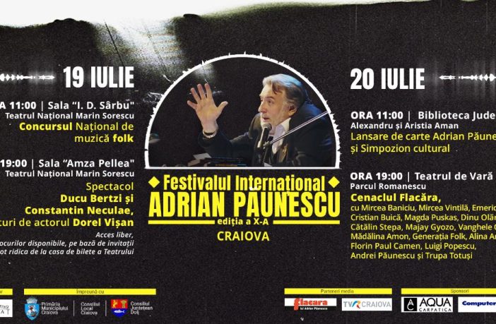Marii artiști ai Cenaclului Flacăra își dau întâlnire la Craiova, la mijlocul lunii iulie, în cadrul Festivalului Adrian Păunescu. Fundația Culturală Iubirea, împreună cu Primăria Municipiului Craiova, Consiliul Local și Consiliul Județean Dolj, organizează pe 19 și 20 iulie 2024, ediția a X-a a Festivalului Internațional Adrian Păunescu, contând pe revista „Flacăra lui Adrian Păunescu”. Pe lângă evenimentele excepționale de pe afișul fiecărei seri, ediția a X-a de Festival aduce în atenția celor care mai cred în poezie și în folk „Concursul de Muzică Folk”, cu premii în bani, diplome…