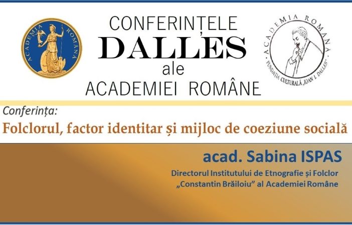 Fundația Culturală Dalles a Academiei Române invită publicul joi, 30 mai 2024, la conferința „Folclorul, factor identitar și mijloc de coeziune socială”, susținută de acad. Sabina Ispas, președinta Secției de arte, arhitectură și audiovizual a Academiei Române și directoare a Institutului de Etnografie și Folclor „Constantin Brăiloiu”. Evenimentul va avea loc în spațiul Sălii „Dalles” din Bd. Nicolae Bălcescu nr. 18, începând cu ora 18. Intrat de timpuriu în atenția cărturarilor atenți la formele diverse ale culturii, folclorul, una dintre „comorile” spirituale ale românilor, a fost considerat sursă de inspirație…