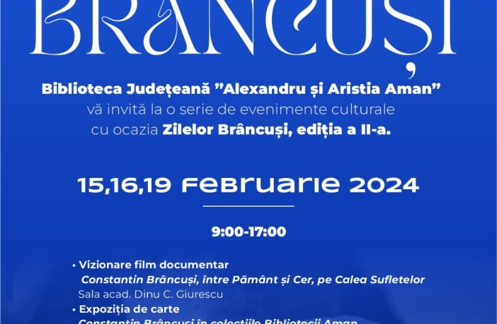 Biblioteca Județeană Alexandru & Aristia Aman Craiova participă la cea de-a doua ediție a Zilelor Brâncuși, organizată de Consiliul Județean Dolj, cu o serie de evenimente culturale, dedicate împlinirii a 148 de ani de la nașterea marelui sculptor oltean. În fiecare zi, în sala „Acad. Dinu C. Giurescu” este disponibilă expoziția de carte „ Constantin Brâncuși în colecțiile Bibliotecii Aman”. Printre titlurile expuse amintim: – Pandrea, Petre, Brâncuși, amintiri și exegeze : estetica lui Brâncuşi, Bucureşti: Editura Vremea, 2009 – Paleolog, V.G., Brâncuşi – Brâncuşi, 2 vol., Craiova : Editura Scrisul Românesc,…