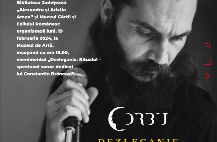 Biblioteca Județeană „Alexandru și Aristia Aman” și Muzeul Cărții și Exilului Românesc organizează luni, 19 februarie 2024, la Muzeul de Artă, începând cu ora 19.00, evenimentul „Dezleganie. Ritualul – spectacol sonor dedicat lui Constantin Brâncuși”. Spectacolul, care face parte din programul celei de-a doua ediții a „Zilelor Constatantin Brâncuși”, este susținut de violonistul Sergiu CORBU Boldor și are o durată de 50 de minute, timp în care vioara, cavalul și textul construiesc o sculptură a sufletului. Structura spectacolului are la bază ceea ce Constantin Brâncuși numea: „Arta nu este decât…