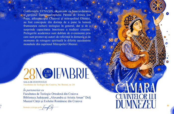 Facultatea de Teologie Ortodoxă din Craiova, în parteneriat cu Biblioteca Județeană „Alexandru și Aristia Aman” Dolj și cu Muzeul Cărții și Exilului Românesc, organizează marți, 28 noiembrie a.c., începând cu ora 16, la Sala de festivități a Facultății de Teologie conferința intitulată „Cămara cuvintelor lui Dumnezeu”. Prelegerea va fi susținută de Înaltpreasfințitul Părinte Acad. dr. Irineu Ion Popa, arhiepiscopul Craiovei și mitropolitul Olteniei, fiind prima dintr-o serie de conferințe teologice dedicate spiritualității ortodoxe și dialogului religios. Pentru cei interesați de gândirea mistică a Răsăritului, la fel ca pentru cei pasionați…