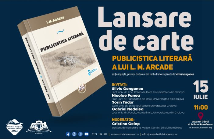 Muzeul Cărții și Exilului Românesc găzduiește marți, 15 iulie 2025, la ora 11.00, lansarea volumului „Publicistica literară a lui L. M. Arcade”, ediție îngrijită, prefață, traducere din limba franceză și note de Silviu Gongonea. Evenimentul va fi moderat de Cristina Gelep, asistent de cercetare la Muzeul Cărții și Exilului Românesc. Cartea reprezintă o selecție bine organizată și atentă a articolelor, eseurilor, cronicilor și reflecțiilor publicate de Arcade în presa literară din exil. Volumul oferă o perspectivă valoroasă asupra modului în care un scriitor român din exil a abordat literatura, cultura…