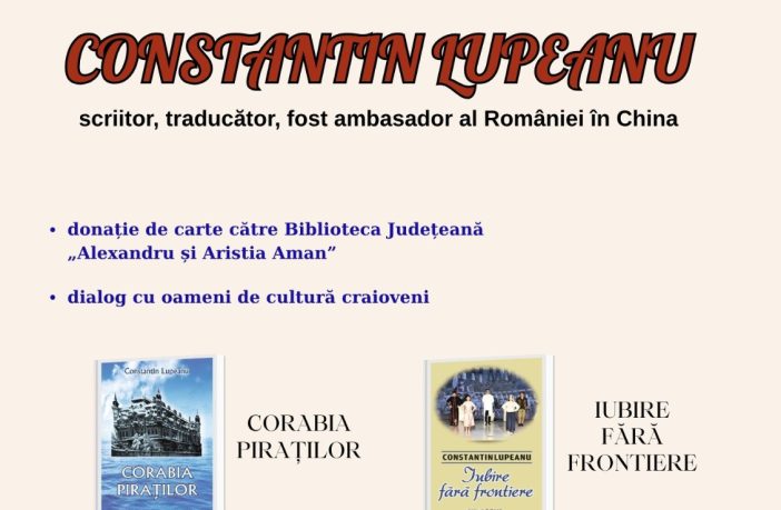 Cel mai mare sinolog român, Constantin Lupeanu, fost ambasador al țării noastre în Republica Populară Chineză, va fi prezent, vineri, la Biblioteca Județeană „Alexandru și Aristia Aman”, pentru a participa la un eveniment în cadrul căruia fostul diplomat va face o donație de carte. „În dialog cu Constantin Lupeanu – scriitor, traducător și fost ambasador al României în China” reprezintă o reîntâlnire cu personalități culturale din Craiova, precum și prezentarea volumelor „Corabia piraților” și „Iubire fără frontieră”, semnate de autor. Cărțile vor fi prezentate de prof. Mihaela Rădulescu. Evenimentul va fi…