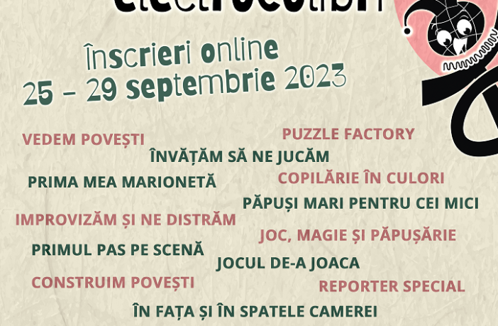 Înscrieri din 25 septembrie, ora 00:01! Teatrul Colibri Craiova organizează o nouă serie de ateliere de creație în perioada 09 octombrie – 02 decembrie 2023. Preţul / atelier (întreaga perioadă) este 170 lei. Persoanele care se înscriu la 3 ateliere achită doar 2, unul fiind gratuit. Cei care optează pentru 4 ateliere, plătesc 3 dintre ele, iar persoanele care aleg 5 ateliere, achită 4. Înscrieri se fac în intervalul 25 – 29 septembrie 2023, doar prin formular on-line, link-urile pentru fiecare atelier în parte fiind disponibile din 25 septembrie, de la ora…