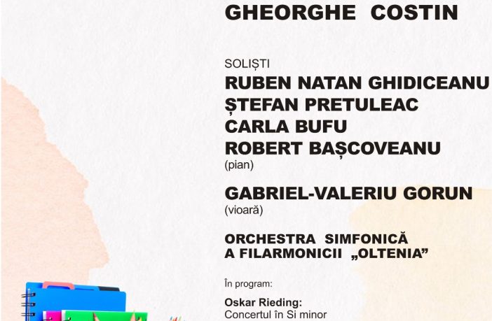 Concert simfonic dedicat deschiderii noului an școlar, în parteneriat cu Liceul de Arte „Marin Sorescu” Într-o seară plină de muzică și emoție, Orchestra Simfonică a Filarmonicii „OLTENIA” vă invită la un concert simfonic de excepție, în parteneriat cu Liceul de Arte „Marin Sorescu”. Evenimentul va avea loc VINERI, 15 SEPTEMBRIE 2023, la ora 18:00, în sala de concerte a Filarmonicii „Oltenia”. Sub bagheta apreciatului dirijor GHEORGHE COSTIN, acest concert va aduce în prim plan tineri soliști talentați: RUBEN NATAN GHIDICEANU, ȘTEFAN PRETULEAC, CARLA BUFU și ROBERT BAȘCOVEANU, la pian, alături de…