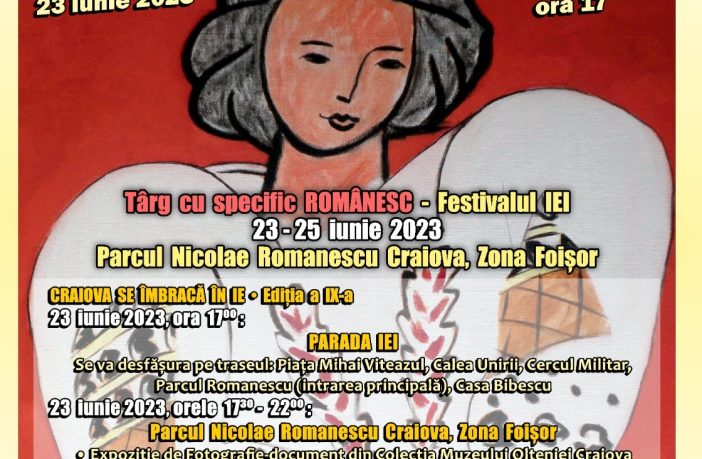 A IX-a ediție a evenimentului “Craiova se îmbracă în ie” organizat sub egida Primăriei Craiova, va marca și în acest an, Ziua Universală a IEI în Bănie. Ne dorim să implementăm în mentalul colectiv importanța păstrării și transmiterii generațiilor viitoare a tot ceea ce ține de identitatea noastră: meșteșuguri, obiceiuri, costume tradiționale, gastronomie tradițională, cântec și joc popular, poezie și teatru popular. Toate acestea constituie și sunt parte din patrimoniul material și imaterial al României. Oltenia are cea mai importantă contribuție adusă patrimoniului UNESCO cu cele mai multe elemente prezente: călușul, covorul…