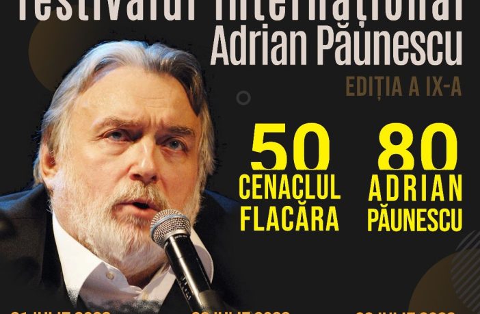 Primăria Municipiului Craiova, Consiliul Local și Fundația Culturală Iubirea organizează, cu sprijinul Consiliului Județean Dolj și al revistei „Flacăra lui Adrian Păunescu”, în perioada 21-23 iulie 2023, cea de-a IX-a ediție a Festivalului Internațional Adrian Păunescu. În același iulie în care Adrian Păunescu ar fi împlinit 80 de ani, în același an în care se împlinesc 50 de ani de la prima manifestare a Cenaclului Flacăra, întâlnirea noastră de la Craiova încearcă să repare din absențe și să scurteze din distanțe. Pe lângă evenimentele excepționale de pe afișul fiecărei seri,…