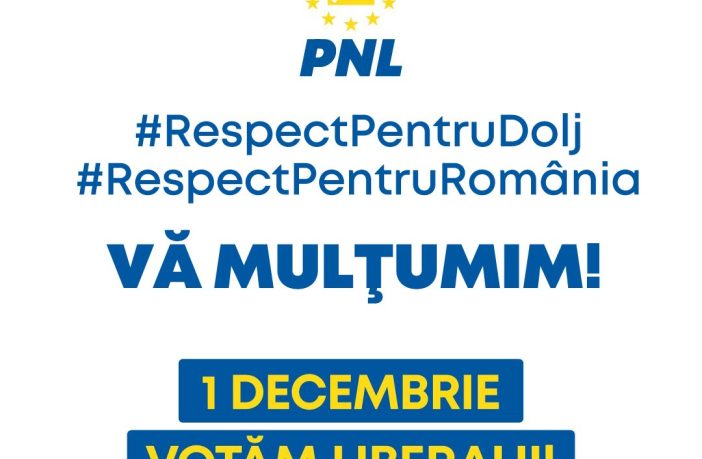 Pe 1 Decembrie, avem nevoie de votul vostru pentru a ne asigura că nu vom pierdem tot ce am câștigat în cei 35 de ani de democrație Ne bucurăm că tot mai mulți doljeni înțeleg că, dacă vrem să schimbăm ceva în bine, trebuie să fim uniți și să ne respectăm unii pe alții. Dincolo de tot ceea ce ne separă, dincolo de opțiunile noastre diferite, în mod sigur, cu toții ne dorim să trăim într-o țară mai bună, într-un județ mai bun, într-un oraș mai bun. Doljul și Craiova…