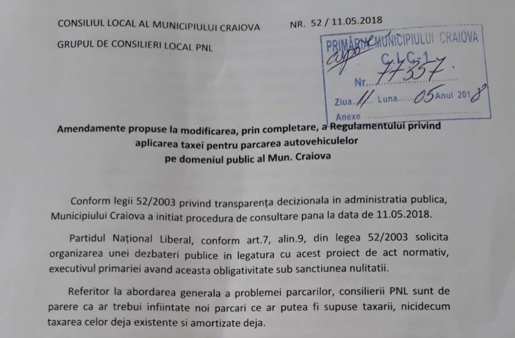 Consilierii majoritari din CL Craiova au pus gând rău locurilor de parcare fără plată din zona centrală. Astfel, alte 672 de locuri de partare cu plată ar putea fi instituite. Regulamentul de aplicare a taxei de parcare pe domeniul public se află în faza de consultare publică. Ar putea apărea locuri de parcare cu plată pe Calea București, Unirii, Mihail Kogălniceanu sau Știrbei Vodă. Primăria Craiova se bazează, în inițiativa sa, pe o propunere a Poliției Locale. Astfel, pe Calea București s-ar institui parcarea cu plată pentru 386 locuri. Ștefan Stoica,…