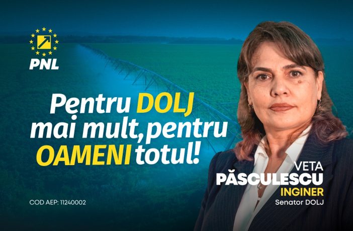Veta Păsculescu – Directorul Agenției Naționale de Îmbunătățiri Funciare (ANIF) Dolj și candidat PNL pentru funcția de senator de Dolj – spune că principiala ei preocupare este sprijinul acordat agricultorilor doljeni. Finanțarea proiectelor pentru infrastructura de irigații va fi o prioritate a mandatului în Parlamentul României. Doljul este al doilea județ agricol al țării cu o suprafață agricolă de 584.028 ha, din care 487.265 ha suprafața arabilă. Ca urmare, agricultura este una dintre componentele esențiale ale economiei doljene și ar putea asigura mare parte din necesarul țării. Sistemul de irigații din Dolj a…