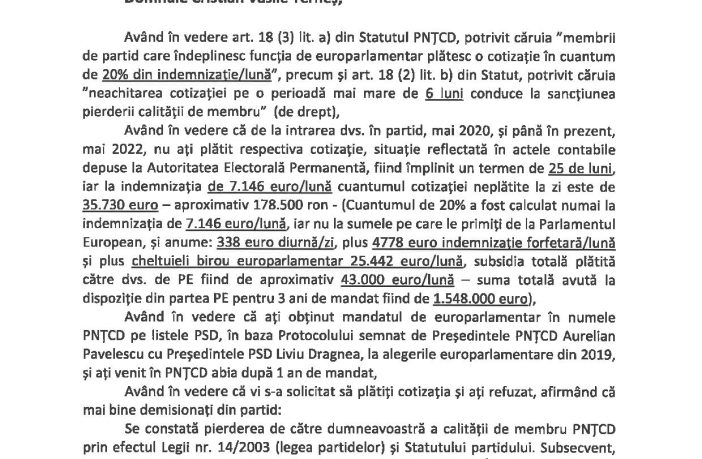 Europarlamentarul Cristian Terheș, primarul municipiului Baia Mare, Cătălin Cherecheș, și viceprimarul municipiului Baia Mare, Doru Dăncuș și-au pierdut calitatea de membri ai PNȚCD și funcțiile de conducere deținute în partid. Vineri, Aurelian Pavelescu a convocat Consiliul Național de Conducere al partidului pentru a găsi o soluție de achitare a datoriilor. Nemaifiind partid parlamentar, PNȚCD nu beneficiază de nicio susținere financiară din partea statului și se poate susține doar prin contribuțiile membrilor. Principala cauză a acumulării datoriilor a fost refuzul membrilor partidului care dețin funcții publice retribuite de a plăti cotizațiile…