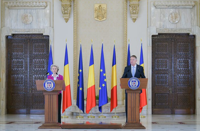Președintele României s-a întâlnit, în această dimineață, cu Ursula Von Der leyen, Președinta Comisiei Europene. În cadrul Conferinței de presă de la finalul discuțiilor, acesta a mulțumit „pentru efortul susținut al Comisiei Europene și al Președintei von der Leyen personal în ceea ce privește asigurarea unității și a coordonării la nivel european, cu statele membre și împreună cu aliații strategici – Statele Unite ale Americii, NATO, Canada, atât în ceea ce privește adoptarea sancțiunilor împotriva Federației Ruse și a Belarusului, cât și cu privire la acordarea de ajutor Ucrainei pe…