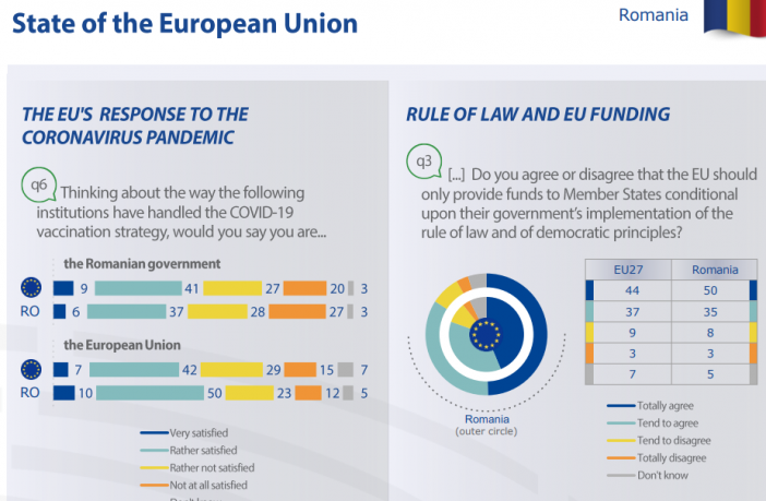 În cel mai recent sondaj, patru din cinci respondenți (81%) afirmă că UE ar trebui să acorde fonduri numai statelor membre care respectă statul de drept și valorile democratice. Președintele Parlamentului European David Sassoli, a declarat: „Poziția Parlamentului European a fost una clară, și anume că fondurile UE de redresare nu trebuie să ajungă la guverne care nu respectă valorile democratice fundamentale sau nu susțin statul de drept. Acest sondaj confirmă faptul că o majoritate covârșitoare a cetățenilor UE sunt de acord cu această poziție. Cine subminează în mod constant…