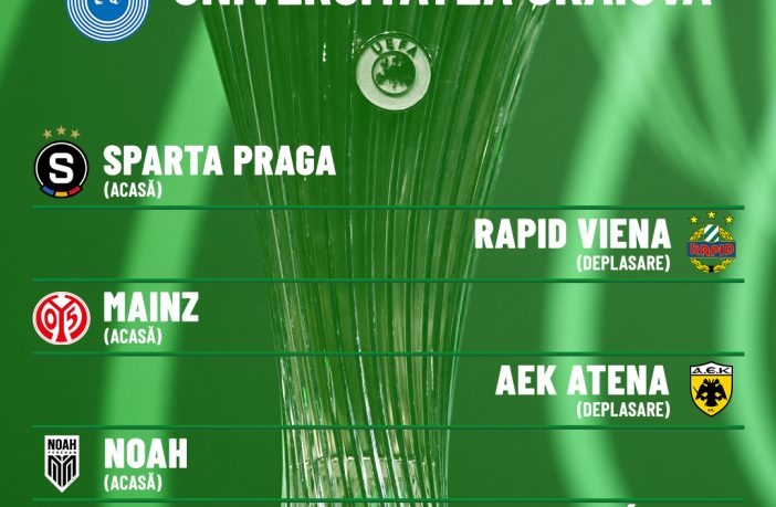 Știința s-a calificat, seara trecută, în grupele Conference League. Oltenii vor disputa, în perioada următoare, 6 partide dintre care 3 vor fi pe teren propriu și alte trei în deplasare. Aflată în urna 5 valorică, Universitatea va disputa prima partidă în deplasare cu Rapid Viena – cel mai cunoscut și titrat club din Austria. Rapid a câștigat de 32 ori Bundesliga, de 14 ori Cupa Austriei, de 4 ori Supercupa. Partida se va desfășura pe Alianz Stadion cu o capacitate de 24.000 locuri. Partida se va desfășura pe 2 octombrie. În…