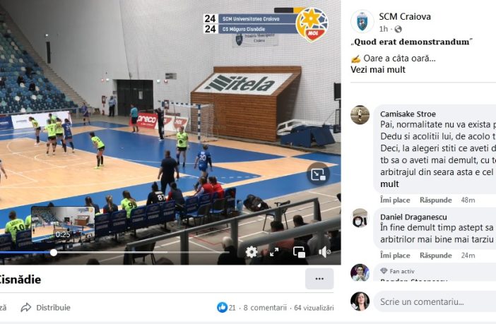 Explozie de furie a reprezentanților SCM Craiova pe o rețea de socializare după ce, și de această dată, fetele noastre au pierdut au pierdut, la limită, partida cu Magura Cisnădie. „ðð®ð¨ð ðð«ðð ððð¦ð¨ð§ð¬ðð«ðð§ðð®ð¦” Oare a câta oară să mai revedem același „film prost”? Oare a câta oară să mai sufere Craiova? Din nou, maniera de arbitraj a viciat un rezultat al echipei noastre. Domnii Ilescu și Manea și-au jucat rolul foarte bine, au arbitrat așa cum trebuiau să o facă și, iată, rezultatul: o victorie nemeritată a oaspetelor și o…