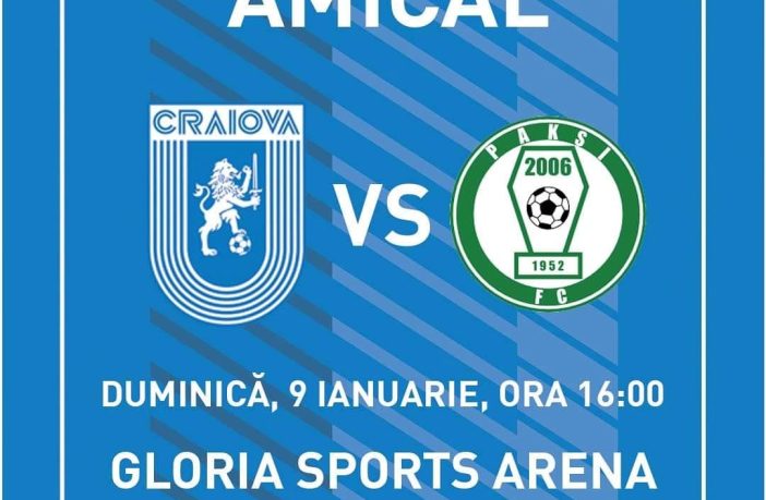 Universitatea Craiova, aflată în cantonamentul din Antalya, va disputa, duminică, primul meci amical pe Gloria Sports Arena. Leii noști vor evolua în compania echipei ungare FC Paksi. Suporterii vor putea urmări partida pe pagina de facebook a clubului din Bănie, începând cu orele 16:00 (17:00 – ora Turciei).
