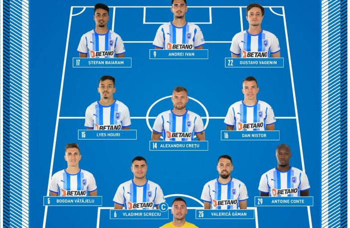 Cele două echipe au anunțat, cu puțin timp în urmă, formațiile de start în partida din această seară. Universitatea Craiova: Mirko PIGLIACELLI 3, Antoine CONTE 29, Marius Valerica GAMAN 25, Vladimir Ionut SCRECIU 6 (C), Bogdan Ilie VATAJELU 5, Dan Nicolae NISTOR 16, Alexandru CRETU 14, Lyes Hafid HOURI 15, Gustavo VAGENIN 22, Virgil Andrei IVAN 9, Stefan BAIARAM 17, Antrenor – Laurentiu REGHECAMPF. Rezerve: David Beniamin LAZAR 1, Stefan Marinel VLADOIU 18, Marius Marcel CONSTANTIN 23, Mihai Alexandru BALASA 4, Cristian Mihai CAPATINA 33, George Alexandru CIMPANU 28, Matteo…