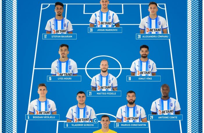 Partida dintre Universitatea Craiova și CFR Cluj din Cupa României va începe în mai puțin de 90 minute. Iată echipele de start: Universitatea Craiova 1. David LAZAR 29. Antoine CONTE 6. Vladimir SCRECIU (C) 23. Marius CONSTANTIN 5. Bogdan VĂTĂJELU 10. Ionuț VÎNĂ 21. Matteo FEDELE 15. Lyes HOURI 28. George CÎMPANU 20. Jovan MARKOVIC 17. Ștefan BAIARAM Laurențiu REGHECAMPF Rezerve: 13. Mirko PIGLIACELLI, 25. Valerică GĂMAN, 11. Nicușor BANCU, 33. Mihai CĂPĂȚÎNĂ, 16. Dan NISTOR, 26. Valeri IVANOV, 9. Andrei IVAN, 22. Gustavo VAGENIN, 19. Elvir KOLJIC CFR Cluj…