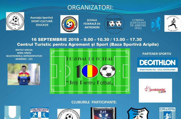 Asociația Club Sportiv Academic Craiova, Federația Română de Fotbal, Școala Federală de Antrenori, Asociația Sportivă Sport-Cultură-Educație, Asociația Sportivă Pro Efs Craiova organizeaza duminica, la Centrul Turistic pentru Agrement și Sport (Baza Sportivă Aripile-zona aeroport) un Festival de Fotbal, dedicat copiilor născuță în anii 2012, 2011, 2010, 2009. Unul dintre obiectivele prioritare este de a IMPLEMENTA în rândul antrenorilor din România, respectarea parcursului linear în pregătirea copiilor (de la inițiere până la marea performanță), pentru a practica fotbalul până la vârste mari, de a nu renunța în scurt timp și în…