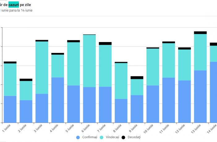 Până astăzi, 15 iunie, pe teritoriul României, au fost confirmate 22.165 de cazuri de persoane infectate cu virusul COVID – 19 (coronavirus). Dintre persoanele confirmate pozitiv, 15.817 au fost declarate vindecate și externate. Numărul de cazuri confirmate, pe județe, potrivit raportării Institutului Național de Sănătate Publică: Nr. crt. Județ Număr de cazuri confirmate 1. Alba 412 2. Arad 703 3. Argeș 365 4. Bacău 566 5. Bihor 659 6. Bistrița-Năsăud 422 7. Botoșani 899 8. Brașov 1.029 9. Brăila 92 10. Buzău 326 11. Caraș-Severin 112 12. Călărași 133 13. Cluj 603 14. Constanța…