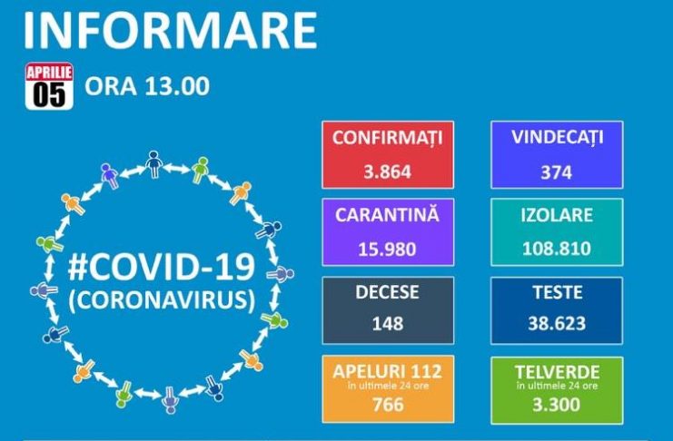 De la intrarea în vigoare a Ordonanței Militare nr. 2 și până în prezent, au fost plasate în carantină instituționalizată 1.600 de persoane care nu au respectat perioada de autoizolare. De asemenea, 55 de persoane aflate în carantină au părăsit locația în care au fost plasate, pentru acestea fiind dispusă măsura carantinării pentru o nouă perioadă de 14 zile. Până astăzi, 5 aprilie, pe teritoriul României, au fost confirmate 3.864 de cazuri de persoane infectate cu virusul COVID – 19 (coronavirus). Dintre persoanele confirmate pozitiv, 374 au fost declarate vindecate și…