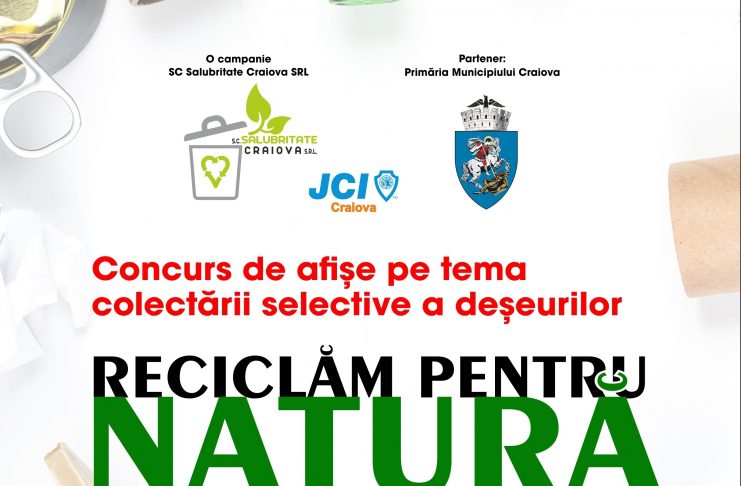 SC Salubritate Craiova SRL, în parteneriat cu Primăria Municipiului Craiova și Junior Chamber International Craiova organizează, în perioada 3 decembrie-31 decembrie 2018, concursul de afișe „Reciclăm pentru natură”, adresat elevilor din clasele IX-XII din municipiul Craiova. Scopul competiției este acela de a promova importanța colectării selective a deșeurilor în rândul elevilor de liceu și de a crea un portofoliu pentru viitoarele proiecte desfășurate de operatorul de salubritate din municipiu. „Continuăm seria acțiunilor noastre derulate în scopul creșterii cantităților de deșeuri reciclabile colectate și a conștientizării craiovenilor cu privire la necesitatea…