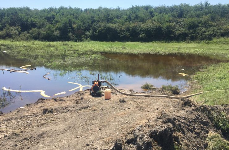 Administraţia Bazinală de Apă Jiu a monitorizat în permanență acţiunea de pompare a apei clare, curate, din groapa săpată, impermeabilizată cu geotextil , la punctul de la Preajba şi dirijarea acesteia in aval. Apa din acumularea de la Preajba este pompată spre aval, astfel încât să existe posibilitatea preluării apelor încărcate cu biodiesel. Ca urmare a lucrărilor susţinute de realizare a platformei pe care va fi amplasată macaraua, a epuismentelor din zona acesteia, a defrişării vegetaţiei, devierea apelor izvorului „Cismeaua” înspre pila dinspre malul stâng al văii la Cârcea, biodieselul existent…
