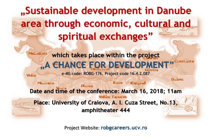 Universitatea din Craiova, în calitate de lider al proiectului „O șansă pentru dezvoltare”, organizează în data de 16 martie 2018, orele 11:00, la sala 444 conferința „Dezvoltare sustenabilă prin schimburi spirituale, culturale și economice”. Proiectul este implementat de către Universitatea din Craiova, în parteneriat cu Regional Development Foundation și Academia de Științe Economice D.A. Tsenov în perioada mai 2017- aprilie 2019 și este finanțat prin intermediul programului INTEREG V-A România-Bulgaria, axa prioritară 4. În cadrul conferinței, vor fi abordate teme vizând bogăția spirituală și culturalăîn zona transfrontalieră româno-bulgară. De asemenea,…