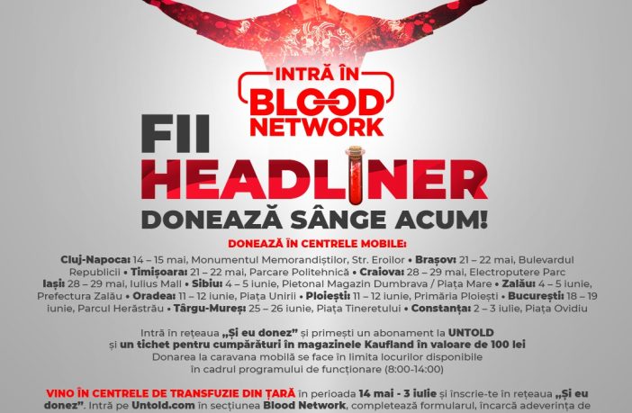 Caravana mobilă de donare de sânge BLOOD NETWORK ajunge în acest weekend la Craiova. Sâmbătă, 28 mai și duminică, 29 mai cei care vor să vină să salveze vieți și să se bucure de experiențe de neuitat la UNTOLD și Neversea sunt așteptați la donare la Mall Electroputere. În premieră anul acesta, cei care donează sânge la caravana mobilă BLOOD NETWORK, între orele 8:00 și 14:00, și se înscriu în baza de date “Și Eu Donez” vor primi un abonament gratuit la UNTOLD sau Neversea, iar cei care donează în centrele de transfuzii primesc…