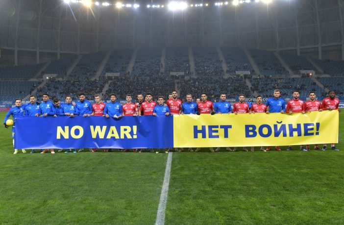 „Sport, nu război!”, este bannerul afișat de către cele două echipe, Universitatea Craiova și Chindia Târgoviște, în debutul partidei de vineri seara de pe Stadionul Ion Oblemenco, din Craiova. Astfel, fotbaliștii celor două echipe au dorit să-și manifeste susținerea pentru poporul ucrainean și dezaprobarea invaziei rusești.