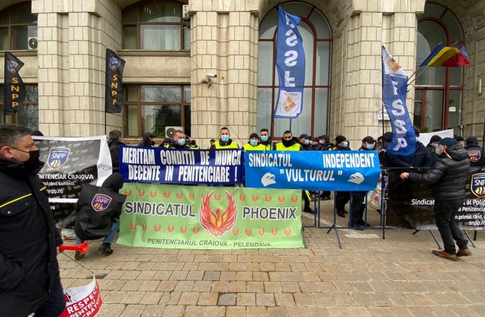 Luni, polițiștii de Penitenciar din cadrul Sindicatului Phoenix-Pelendava din Penitenciarul Pelendava Craiova, au protestat în fața Ministerului de Justiție. Acțiunile se vor relua cu regularitate la interval de două săptămâni, cu modificarea locațiilor de protest, acestea urmând sa fie comunicate public, in timp util. Protestam pentru ca Poliția Penitenciară este: – Singura instituție din structura de apărare națională care nu acorda titlul de specialist de clasa prevăzut de lege. – Ultima instituție din structura de apărare națională ca procent de posturi ocupate raportat la posturile prevăzute in norme si in standarde.…