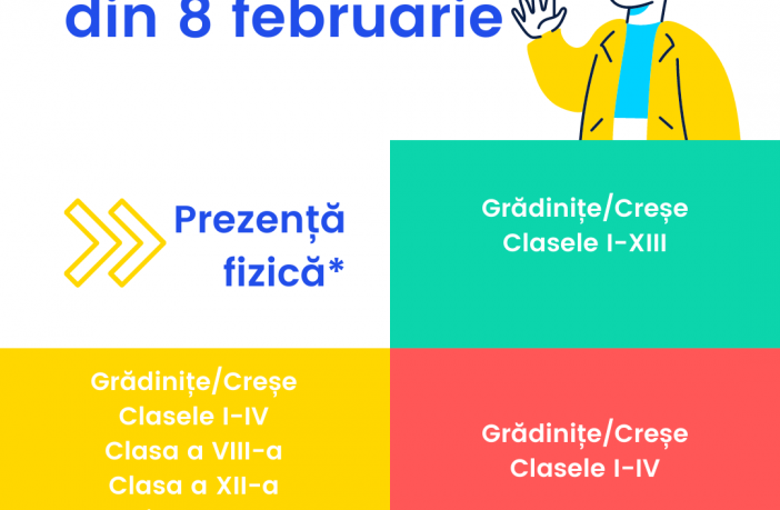 Începând de luni, o parte dintre elevii români se întorc la școală, renunțând la învățământul on-line. Scenariile privind activitatea instituțiilor de învățământ sunt următoarele: VERDE: Incidența cumulată în ultimele 14 zile a cazurilor din localitate este mai mică sau egală cu 1/1000 de locuitori – Participarea zilnică a tuturor preşcolarilor şi elevilor în unităţile de învăţământ, cu respectarea şi aplicare tuturor normelor de protecţie sanitară GALBEN: Incidența cumulată în ultimele 14 zile a cazurilor din localitate este mai mare de 1/1000 dar mai mică sau egală cu 3/1000 de locuitori…