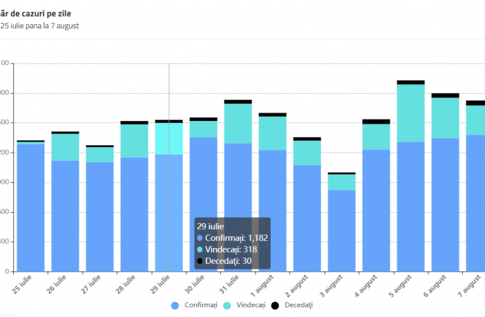 Până astăzi, 7 august, pe teritoriul României, au fost confirmate 59.273 de cazuri de persoane infectate cu noul coronavirus (COVID – 19). 29.289 de pacienți au fost declarați vindecați și 5.897 de pacienți asimptomatici au fost externați la 10 zile după depistare. În urma testelor efectuate la nivel național, față de ultima raportare, au fost înregistrate 1.378 cazuri noi de persoane infectate cu SARS – CoV – 2 (COVID – 19), acestea fiind cazuri care nu au mai avut anterior un test pozitiv. Distribuția pe județe a cazurilor per total…