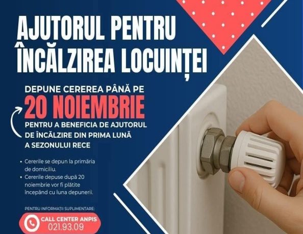 Data de 20 noiembrie este termenul-limită pentru a beneficia de ajutorul de încălzire din prima lună a sezonului rece Agenția Județeană pentru Plăți și Inspecție Socială Dolj (AJPIS Dolj) reamintește că 20 noiembrie 2025 este ultima zi în care persoanele și familiile vulnerabile pot depune cererile pentru a beneficia de ajutorul pentru încălzirea locuinței începând cu luna noiembrie 2025, prima lună a sezonului rece, așa cum prevede Legea nr. 226/2021 privind măsurile de protecție socială pentru consumatorul vulnerabil de energie. Ajutorul pentru încălzire se acordă pentru perioada 1 noiembrie 2025…