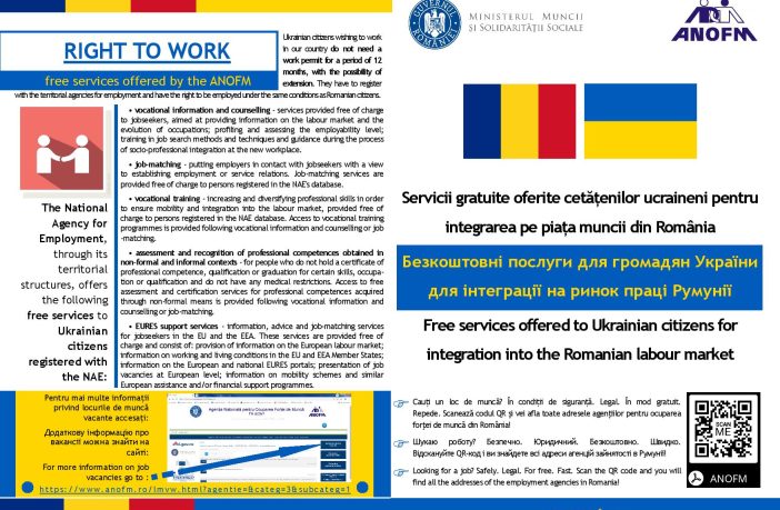 Pe fondul conflictului armat în Ucraina, Ministerul Muncii şi Solidarităţii Sociale a luat o serie de decizii care vizează flexibilitatea condiţiilor de acces pe piaţa muncii din România pentru cetăţenii ucrainieni. În data de 07.03.2022 a fost aprobat în şedinţa de Guvern un act normativ ce are în vedere instituirirea unor măsuri de sprijin şi asistenţă umanitară. Soluţiile pentru facilitarea accesului cetăţenilor ucrainieni pe piaţa muncii din Romînia sunt: – Persoanele ucrainiene care intra pe teritoriul Romîniei şi nu solicită o formă de protecţie potrivit Legii nr 122/2006 privind azilul…