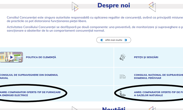 Comparatoarele de tarife pentru ofertele furnizorilor de gaze naturale și energie electrică sunt acum disponibile și pe pagina web a autorității de concurență, www.consiliulconcuretei.ro. În contextul liberalizării pieței de energie electrică, comparatorul de tarife realizat de Autoritatea Națională de Reglementare în domeniul Energiei – ANRE a fost accesat de mulți consumatori casnici pentru a analiza ofertele furnizorilor, ceea ce a dus la o îngreunare a funcționării acestuia. Ca urmare, Consiliul Concurenței și ANRE au decis ca cele două platforme pentru compararea ofertelor (gaze naturale și energie electrică) să poată fi…