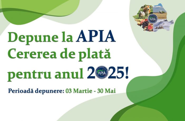 Ministerul Agriculturii și Dezvoltării Rurale, prin Agenţia de Plăţi şi Intervenţie pentru Agricultură (APIA), a demarat începând de luni, Campania de primire a Cererilor de plată în anul 2025. Fermierii vor putea depune Cererea de plată în perioada 03 martie – 30 mai și fără obligația de a se prezenta la Centrele APIA, doar prin accesarea aplicației geospațiale AGI Online, conform Instrucţiunilor de utilizare disponibile în interfaţa aplicaţiei, pe site-ul APIA www.apia.org.ro. În situația în care se accesează și scheme din sectorul zootehnic, fermierii se vor prezenta la Centrele APIA…