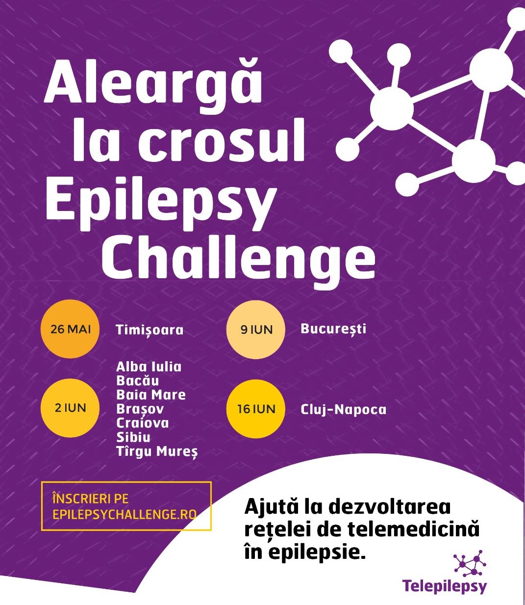 TELEPILEPSY – reţeaua de telemedicină în epilepsie în Romania, organizează cel mai mare cros pentru epilepsie din ţara noastră. Evenimentul se va numi „Epilepsy Challenge” şi se va desfăşura în 10 oraşe din România.