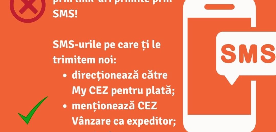 Furnizorul de energie electrică și gaze naturale le reamintește clienților săi că orice mesaj text (SMS) venit din partea CEZ Vânzare conține numele companiei, ca expeditor.