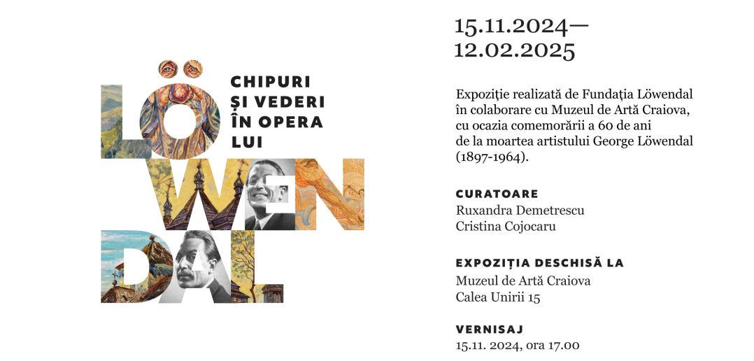 Muzeul de Artă Craiova și Fundația Löwendal vă invită vineri, 15 noiembrie 2024, ora 17:00, la vernisajul expoziției „Chipuri și vederi în opera lui Löwendal”, organizată cu ocazia comemorării a 60 de ani de la moartea artistului George Löwendal (1897-1964).