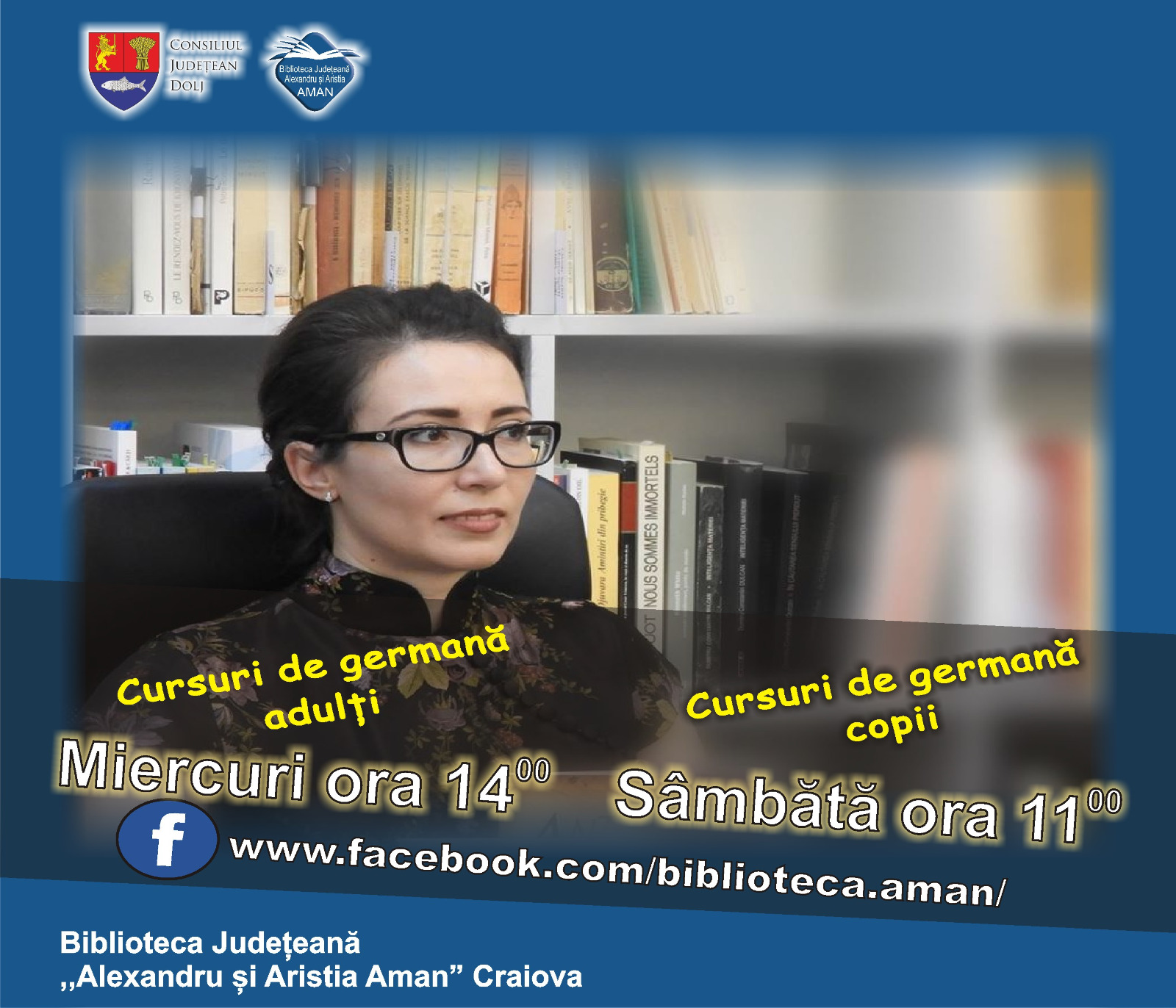 Lecțiile pentru adulți vor avea frecvență săptămânală și vor fi postate pe pagina de facebook a Bibliotecii Județene „Alexandru și Aristia Aman” în fiecare zi de miercuri, la ora 14.00. Cei mici sunt așteptați și ei la cursurile de limba germană, care vor fi postate pe pagina de facebook a Bibliotecii Județene „Alexandru și Aristia Aman” în fiecare zi de sămbătă, la ora 11.00.