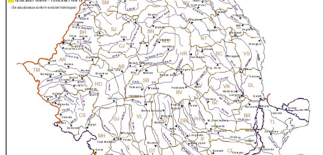 Având în vedere situaţia hidrometeorologică din Bazinul Dunării în secţiunea Baziaş, I.N.H.G.A. instituie Codul Galben – Faza I de apărare, începând de mâine dimineață 12.02.2021, ora 6:00, până vineri, 19 februarie, ora 12:00.
