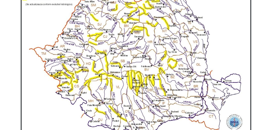 Fenomenele hidrologice periculoase se pot produce şi pe afluenții de grad inferior ai râurilor marcate pe hartă.